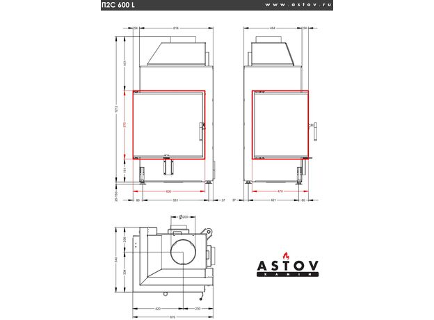 Каминная топка Astov П2С 600 L