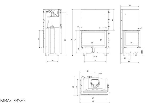Каминная топка Kratki MBA 17 L/BS/G