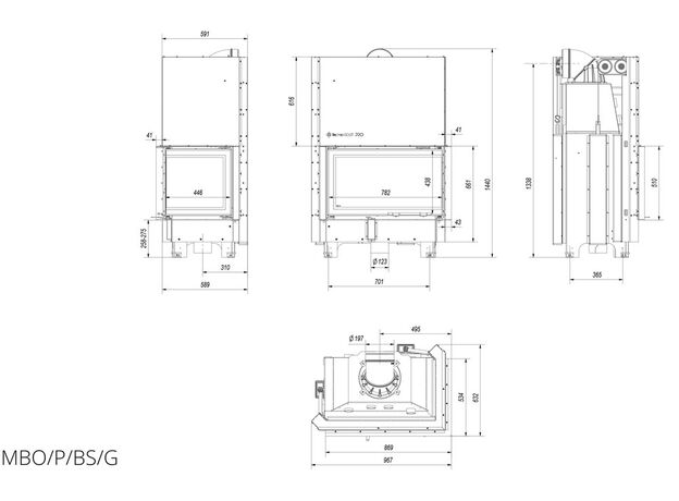 Каминная топка Kratki MBO 15 R/BS/G
