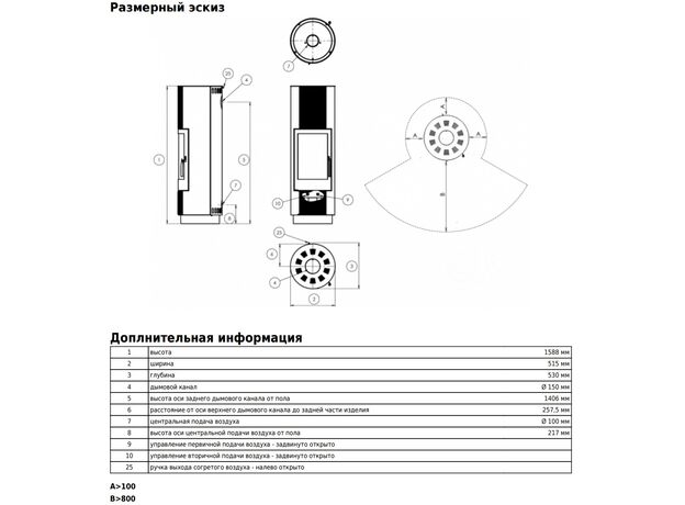 Диаметр дымохода: