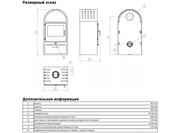 Диаметр дымохода: