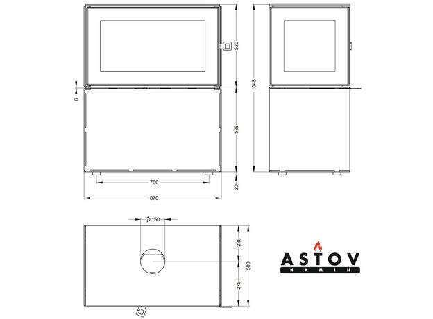 Печь-камин Astov КУБ 3С 800 на дровнике