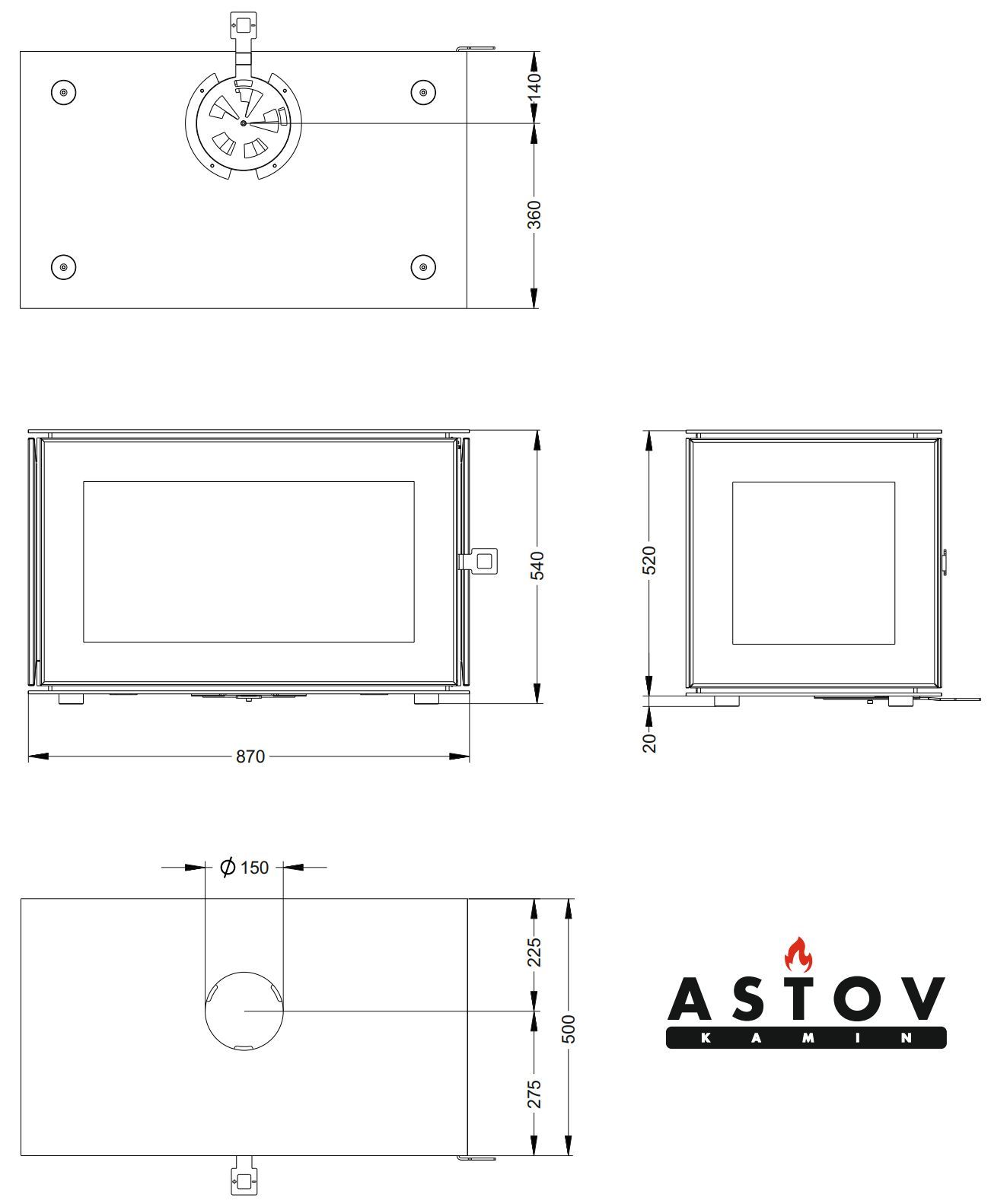 Печь-камин Astov КУБ 3С 800