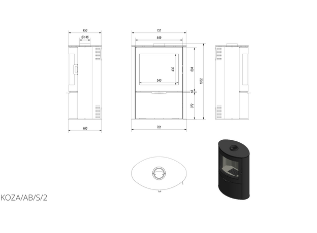 Печь-камин Kratki Koza AB S/2
