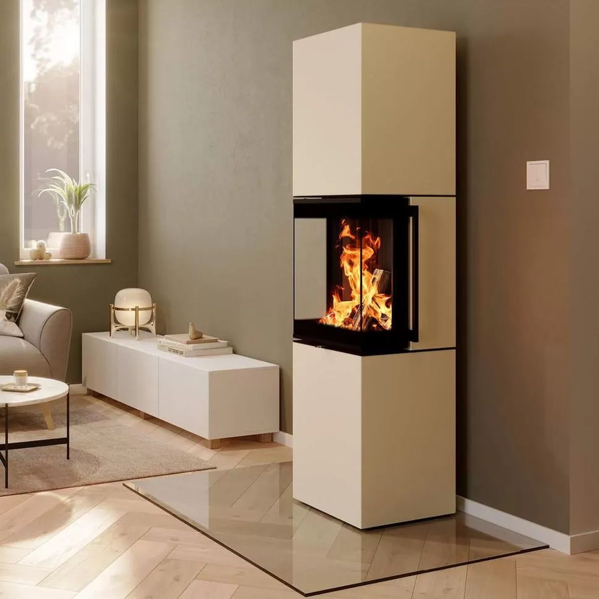 Печь-камин Spartherm Trico L перламутровая
